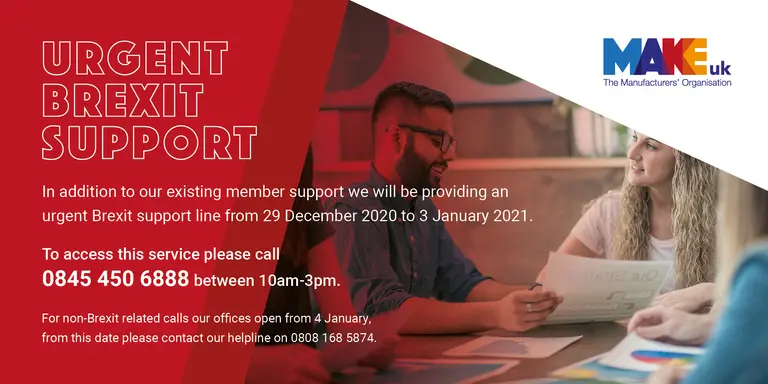 Please note that the offices of Make UK will close at 5.30pm on Wednesday 23 December 2020 and will reopen at 8.30am on Monday 4 January 2021.